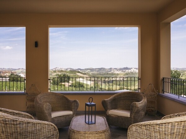 Elegant villa in Piedmont between Alba and Asti, surrounded by vineyards, with private pool, panoramic views, refined interiors and generous outdoor spaces.